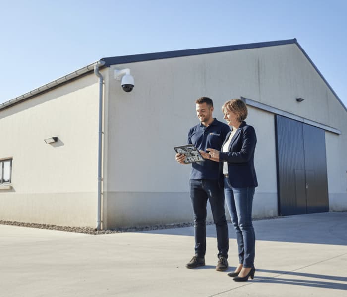 Pour les grandes surfaces (entrepôts, exploitations agricoles, sites multi-bâtiments), nous installons des caméras avec vision longue portée, des détecteurs adaptés aux grands volumes, et nous concevons une solution sur mesure selon votre configuration.